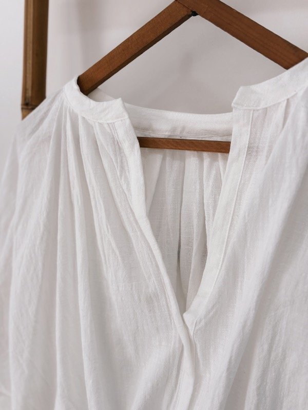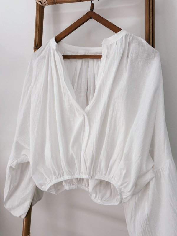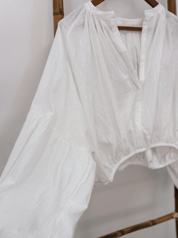 Camisa de algodon con mangas globo y elástico en la cintura.